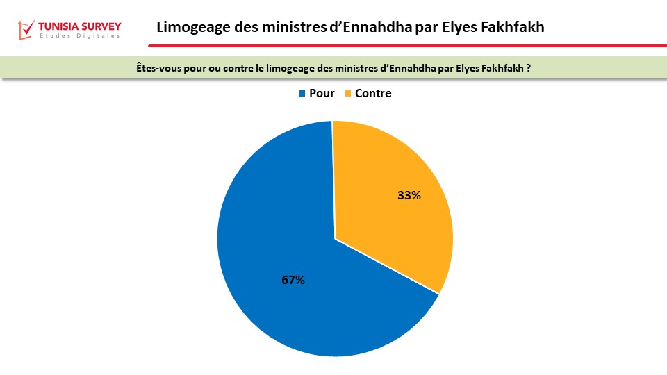 - 67% des enquêtés sont POUR le limogeage des ministres d’Ennahdha.