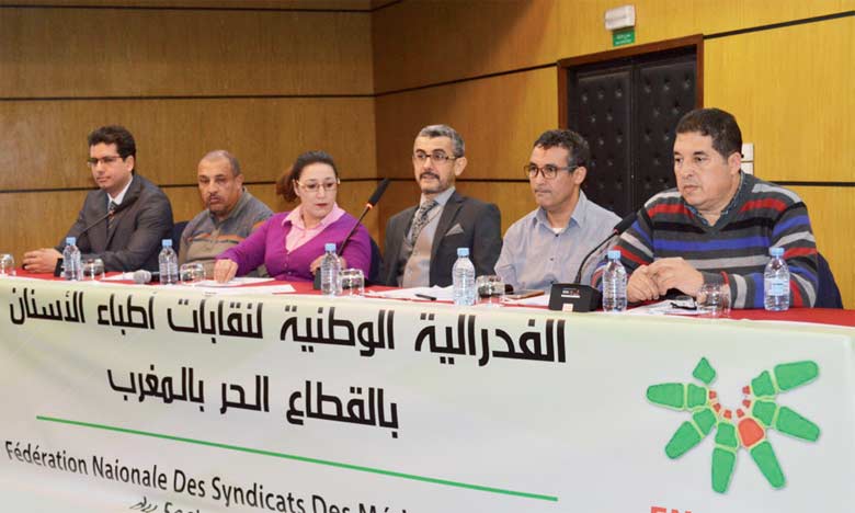 de se dégrader. Leurs revendications : la nécessité d’accélérer le rythme des concertations autour des textes d’application des lois 98-15 et 99-15, relatifs à la couverture médicale et à la retraite, et ce, en prenant en considération le revenu forfaitaire proposé par la profession, la révision de l’actuelle politique d’impôts de la profession libérale de la médecine dentaire, selon un système fiscal équitable prenant en compte le principe de l’équité fiscale prévue constitutionnellement. Ils dénoncent aussi l’injustice fiscale dont est victime le médecin dentiste sous prétexte de la réforme fiscale, et dont les détails ont été fixés par la Direction des Impôts en l’absence d’un accord définitif avec la Fédération. Et rejettent les nouvelles mesures contenues dans la loi de finances pour l’année 2019 et en particulier la retenue des impôts à la source sur les sommes mensuelles des loyers ainsi que le nouveau régime de facturation électronique. La profession veut aussi mettre un terme à toutes les formes de l’exercice illégal de la médecine dentaire et l’accélération du processus d’adoption du projet de loi 14-25 dans son volet relatif aux prothésistes dentaires selon la version adoptée par le Parlement. Autre doléance, le refus catégorique des violations de la part de la Caisse nationale des organismes de prévoyance sociale (CNOPS) de la loi 65-00 et la Convention Nationale. La Fédération appelle l’Agence Nationale de l’Assurance Maladie (ANAM) à activer la révision globale de la Convention Nationale y compris la tarification nationale de référence et d’actualiser la liste des catégories globales des prestations de services de la médecine dentaire tout en donnant un délai de deux mois avant son entrée en application. Dans le cas contraire, la Fédération se trouvera dans l’obligation de lancer un appel pour un abandon collectif de la convention. Selon la fédération, le cahier revendicatif a été présenté à maintes reprises aux pouvoirs publics. Mais a ce jour, aucun signal qui lui permettrait de croire à une issue favorable n’a été reçu. Les médecins sont déterminés. Ils ne baisseront pas les bras et useront de tous les moyens pour se faire entendre, disentils. Première action : l’organisation de « la marche de la colère», le lundi 11 février 2019 à Rabat. Une action qui vise à signifier aux responsables le mécontentement de tous les syndicats nationaux des dentistes du secteur libéral. Cette marche sera accompagnée, le même jour, d’une grève nationale des médecins dentistes du secteur libéral. Selon la fédération, il s’agit là, d’une première phase d’une série d’actions qui seront déployées si nécessaire. «La Fédération est déterminée à mobiliser tous les syndicats pour défendre les droits des médecins dentistes du secteur libéral, la fin justifiant les moyens », annonce la FNSMD Privé ✱