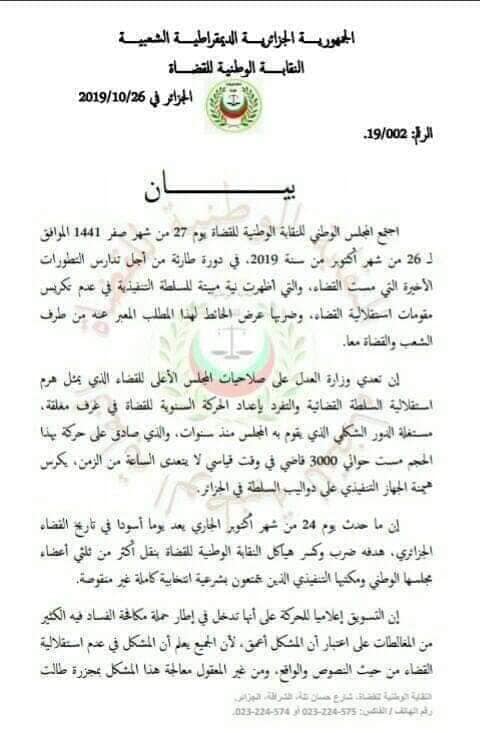 Le SNM qui voit en ce mouvement une tentative de «déstabilisation des structures du syndicat national des magistrats», exige, dans un communiqué rendu public, «le gel de toutes les décisions issues de ce mouvement» ainsi que «la révision des textes juridiques actuels qui consacrent l’hégémonie du pouvoir exécutif sur le pouvoir judiciaire».