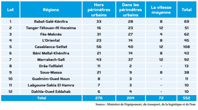 La mise en place de ce plan a été l’occasion de procéder au lancement officiel de l’opération radars fixes avec l’installation progressive de 552 radars de nouvelle génération dans les différentes régions du Royaume. Ces nouveaux radars viendront ainsi s’ajouter aux 140 appareils déjà opérationnels. Parmi ces radars figurent 72 appareils de contrôle de la vitesse moyenne au niveau des autoroutes, 276 appareils de contrôle de vitesse hors périmètres urbains, 204 appareils de contrôle du respect des feux de signalisation de la vitesse dans les périmètres urbains. Quant aux appareils de contrôle de la vitesse, ils seront installés au niveau du réseau autoroutier et permettront de contrôler la vitesse moyenne des véhicules au niveau des sections autoroutières sur plusieurs kilomètres. En plus du contrôle de la vitesse des véhicules, ces radars sont dotés de fonctions supplémentaires qui amplifient considérablement leur efficacité. La particularité de ces nouveaux radars est qu’en plus de la détection des infractions relatives à l’excès de vitesse et les feux de signalisation, ils peuvent détecter plus d’un véhicule à la fois, pouvant atteindre jusqu’à 24 véhicules. Ils disposent de plusieurs autres caractéristiques, à savoir la détection des infractions relatives à la ligne continue, la distinction entre les véhicules légers et les poids lourds, la possibilité d’exploitation dans les deux sens (éloignement-rapprochement) et l’utilisation de la technique de balayage par laser. Le déploiement des nouveaux radars est prévu dans les douze régions du Royaume : 108 à Casablanca-Settat ; 92 à Marrakech-Safi ; 69 à Rabat-Salé-Kénitra ; 62 à Fès-Meknès ; 51 à Tanger-Tétouan-Al Hoceïma ; 45 dans l’Oriental ; 43 à Béni Mellal-Khénifra ; 38 à Souss-Massa ;13 à Drâa-Tafilalet ; 11 à Guelmim-Oued Noun ; 10 à Laâyoune-Sakia El Hamra ; 10 à Dakhla-Oued Eddahab. D’ici à la fin de l’année, tous les appareils seront a priori en place. Ces nouveaux radars devraient dissuader les automobilistes de commettre des infractions.