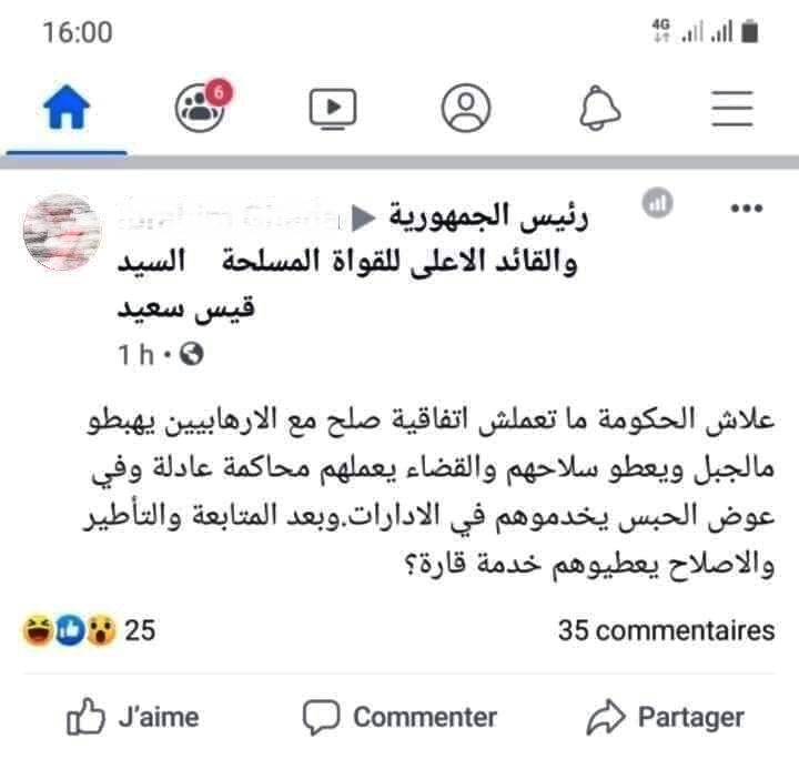 Quand un de ceux qui, au nom du fait d’avoir voté Kaïs Saïed, se permet de lui suggérer d’amnistier les terroristes cachés dans les montagnes et de les intégrer dans les administrations tunisiennes!