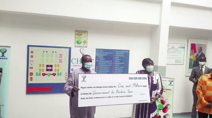 La Commission de l’Union économique et monétaire ouest-africaine (UEMOA) est solidaire des pays membres dans la guerre contre la maladie à coronavirus. Ainsi, à l’instar des autres Etats membres, elle a remis, le lundi 10 août 2020 à Ouagadougou, une enveloppe de 500 millions F CFA. Cette somme est destinée à l’acquisition de kits de prélèvement et de diagnostic. En plus, des masques pour le personnel soignant et des masques à usage multiple pour le grand public d’une valeur de plus de 875 mille F CFA ont été également offerts.