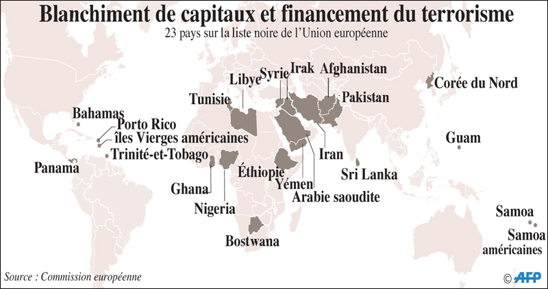 Le Groupe d’action financière international (Gafi) s’était quant à lui déclaré très préoccupé par la liste noire proposée par Bruxelles, insistant sur son propre rôle central dans ce domaine. L’organisme est chargé de coordonner les efforts mondiaux pour assainir le système financier international, actuellement présidé par les Etats-Unis.