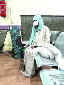 Le visage ridé, la peau décharnée, livrée à elle-même, c’est dans un état piteux que nous la retrouvons sur la banquette en fer, entourée d’un baluchon et d’une vieille natte. 19h20. Assise sous le hall, elle attend que les derniers patients vident le lieu pour qu’elle installe sa « chambre ». L’attente est longue. Mais, les quelques mots qu’elle lâche, laisse entendre
