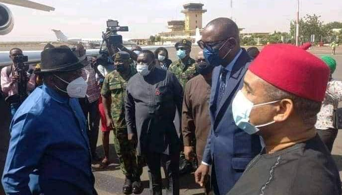 L’ancien président du Nigeria accompagné du président de la Commission de la Cedeao, l’ivoirien, Jean Claude Kassi Brou ont été accueillis à Bamako par le ministre malien des Affaires étrangères et de la coopération internationale, Abdoulaye Diop.Cette mission de trois jours intervient « dans le cadre de la mise en application des dernières recommandations de la Conférence des chefs d’État et de gouvernement de la Cedeao sur le Mali » selon un communiqué de l’organisation régionale. Goodluck Jonathan est « porteur d’un message » des chefs d’État et de gouvernement de l’organisation de la Communauté économique des États d’Afrique de l’Ouest (Cedeao), au président de la Transition, le colonel Assimi Goïta.