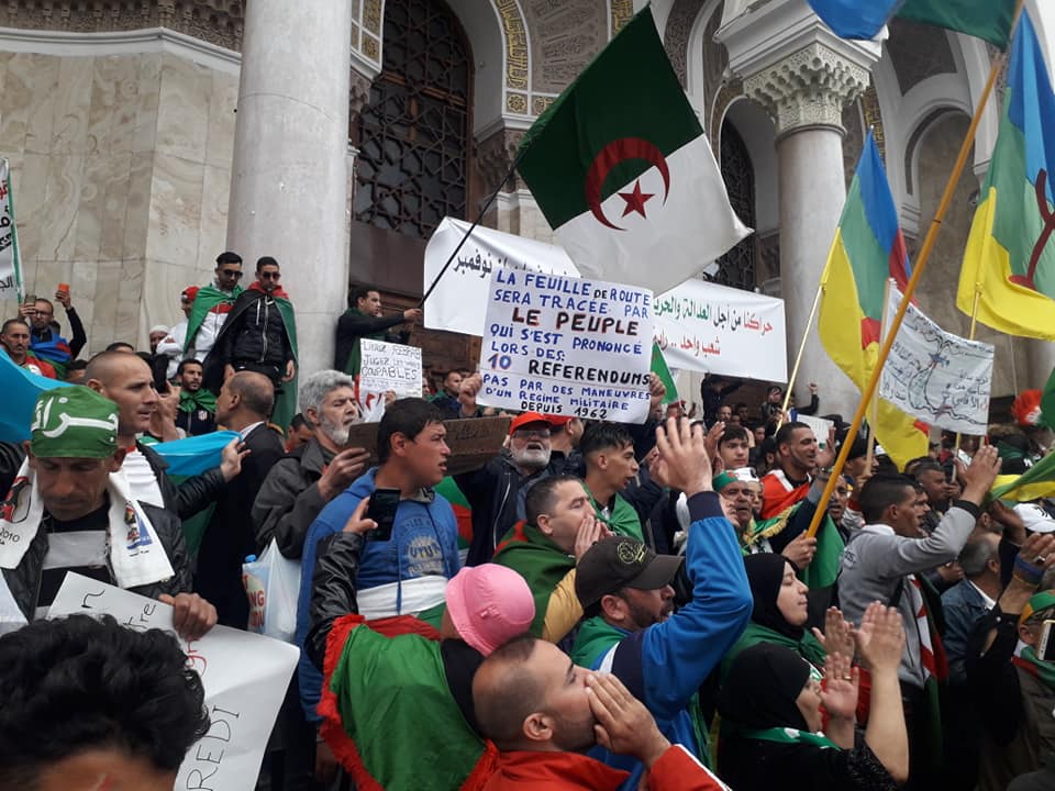 A 11h, des milliers de personnes sont rassemblées devant la grande poste, en attendant la marche du 11e vendredi prévue, comme d’habitude, à partir de 14h00. « Echâab yourid yetnahaw gaâ (Le peuple veut les dégagez tous !) », « y’en a marre de ce pouvoir », scande la grande foule multicolore.