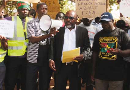 Elles sont du Front pour l’indépendance monétaire (FMI), du mouvement urgences panafricanistes, de Génération Thomas Sankara (GTS), de la Génération consciente (GC), toutes d’obédience panafricaniste, à protester contre le maintien du F CFA dans les colonies françaises d’Afrique. Et c’est la médiathèque municipale qui a servi de lieu de rassemblement pour les manifestants. En effet, selon le coordonnateur du mouvement Urgences panafricanistes, le Pr Guissou P. Boris, la manifestation répond au mot d’ordre lancé par celui qu’il nomme « le leader charismatique panafricaniste », à savoir le franco-béninois, Kemi Seba. Pour lui, le mot d’ordre a été suivi partout sur le continent africain, sauf en Côte d’Ivoire où « la marche de la jeunesse panafricaniste a été empêchée par les forces de l’ordre qui ont vite assiégé les lieux où elle devrait avoir lieu », nous a-t-il confié. Et Guissou P. Boris de préciser que la sortie du 23 février 2019, a pour but de dire « non à l’impérialisme et à toutes ses formes de ramifications ». Car, la jeunesse africaine, dans son écrasante majorité, en a marre de la pseudo indépendance, a-t-il martelé. Et c’est pour cette raison que « nous voulons dès aujourd’hui notre indépendance monétaire », a-t-il laissé entendre. Les jeunes qui ont répondu présents, scandaient, durant la manifestation, des slogans hostiles aux dirigeants africains qui sont favorables, selon les mots de Guissou, au « maintien du F CFA dans les pays colonisés par la France ». En plus, on pouvait lire sur les pancartes que les manifestants ne cessaient de brandir, des messages comme ceux-ci : la France-Afrique tue plus que le SIDA, non à l’exploitation de l’Afrique, non au franc des colonies françaises d’Afrique, à bas l’impérialisme, la France est un enfer pour l’Afrique…