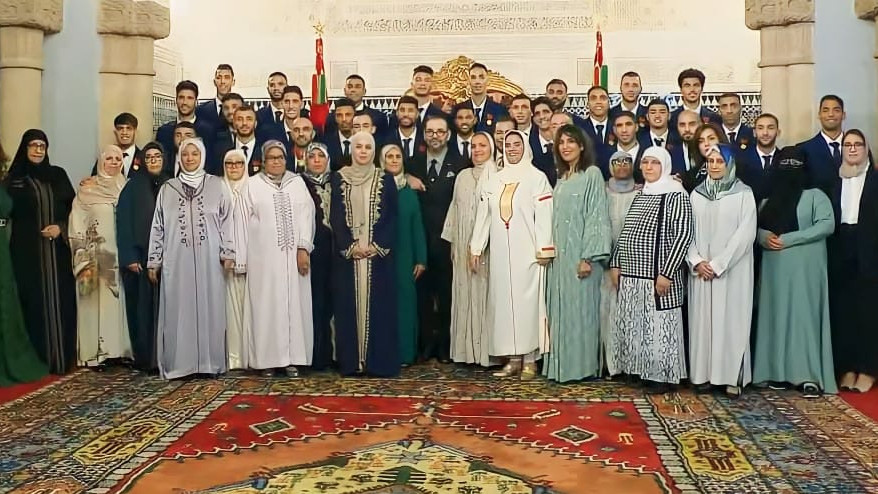 Au cours de cette audience, le Souverain a décoré le Président de la Fédération Royale Marocaine de Football, Fouzi Lakjaâ, l’entraîneur de l’Équipe Nationale, Walid Regragui, et les joueurs de l’équipe nationale, qui étaient accompagnés de leurs mères, de Ouissams Royaux.