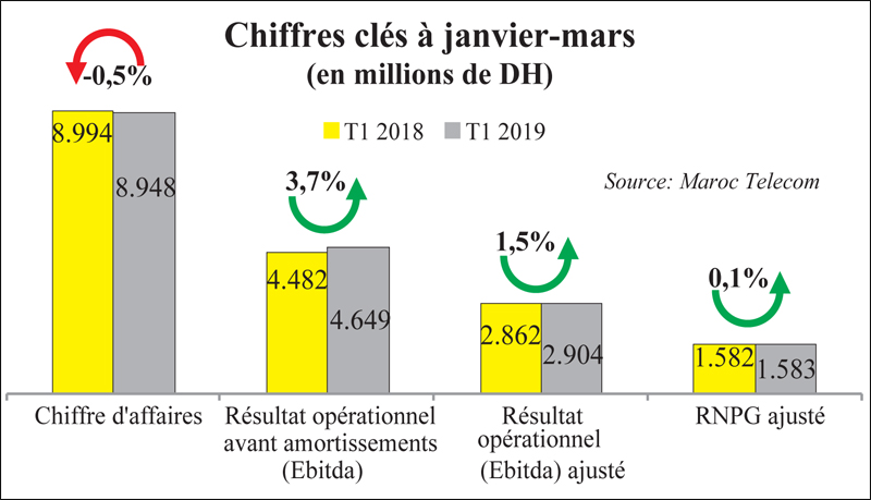 Après une cuvée 2018 de bonne facture, Maroc Telecom vient de publier un résultat net part du groupe ajusté stable à 1,6 milliard de DH sur les trois premiers mois de l’année. Le groupe dont le parc s’est élargi à 62 millions de clients a réalisé un chiffre d’affaires de 8,9 milliards de DH, au même niveau qu’à la même période l’année dernière.