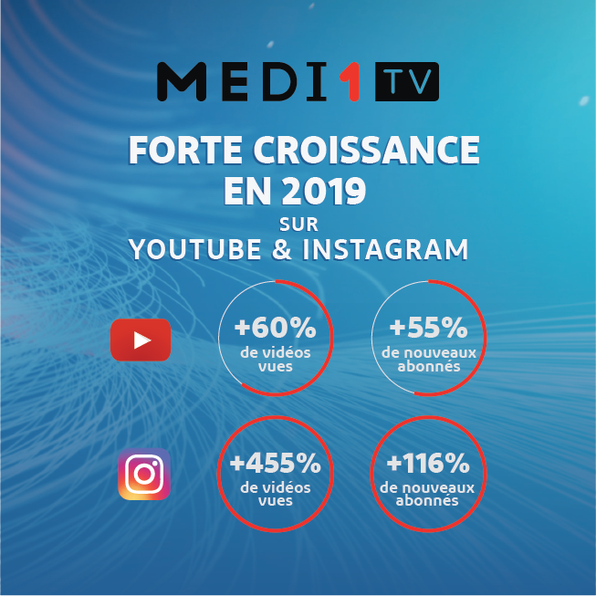 Leader depuis plusieurs années sur Facebook avec ses 6,5 millions de fans et son fort taux d’engagement, Medi1TV consolide ses performances avec des résultats significatifs en 2019, notamment avec 220 millions de vidéos vues et 427 millions de personnes touchées l’an dernier.