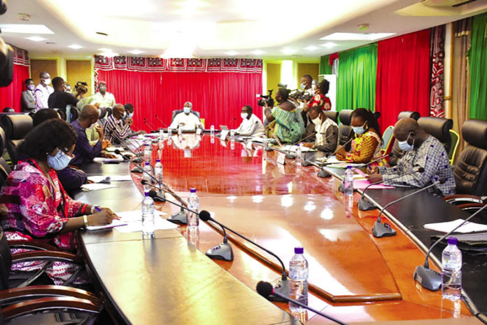 Le Premier ministre, Christophe Joseph Marie Dabiré, a organisé, le jeudi 4 juin 2020 à Ouagadougou, un conseil de cabinet avec les membres du gouvernement, pour échanger sur la mise en œuvre des engagements pris par le Président du Faso dans le cadre de la lutte contre la COVID-19.