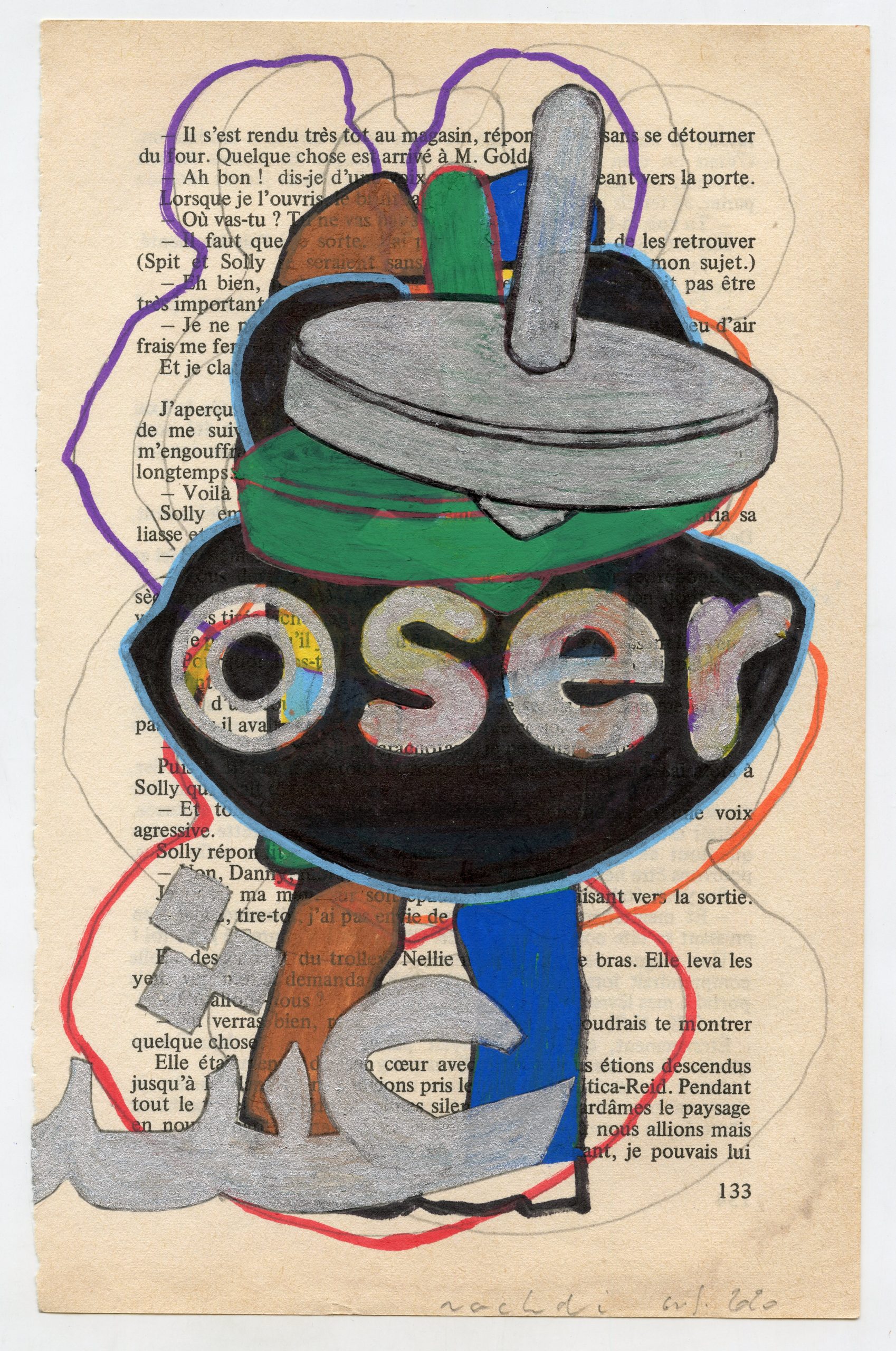 Quant à la deuxième série baptisée «Les Enluminures du désir», elle propose un ensemble d’œuvres de petits formats réalisées sur des pages de livres à base de médiums divers en articulant le vocabulaire de l’artiste à travers des compositions qui donnent la part belle à la polychromie. «Cette série s’inscrit pleinement dans la suite des autres séries de Mohamed Rachdi, comme «Les Dunes du désir», «Les Puits du désir», «Les Rosaces du désir»…, tout en développant le projet en continuelle mutation qu’est «La Bibliothèque de Majnoun»», explique la galerie.