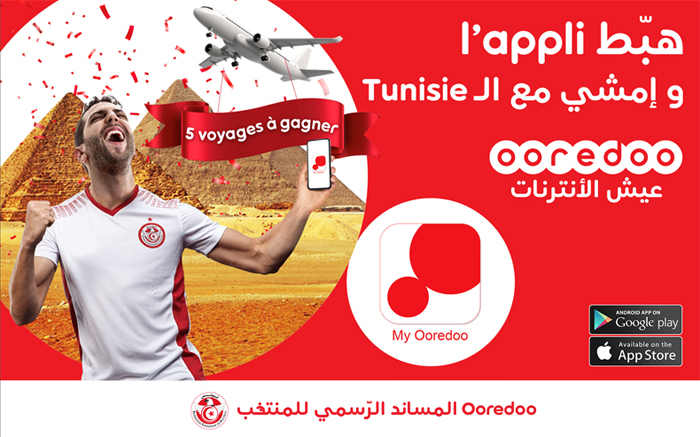 En effet, l’opérateur offre aux supporters des aigles de Carthage 5 voyages pour assister aux matchs de la Tunisie dans la Coupe d’Afrique des Nations 2019 qui se déroulera du 21 juin au 19 juillet en Égypte. Pour participer, rien de plus simple. Tout abonné qui télécharge l’application My Ooredoo durant la période de jeu (06-19 mai) sera automatiquement éligible au tirage au sort et pourra de ce fait gagner un voyage en Égypte.