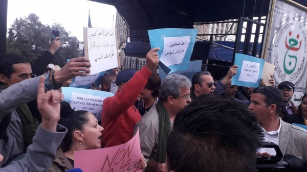 Sit-in des travailleurs de l’EPTV. Photo : Mohammed Iouanoughene