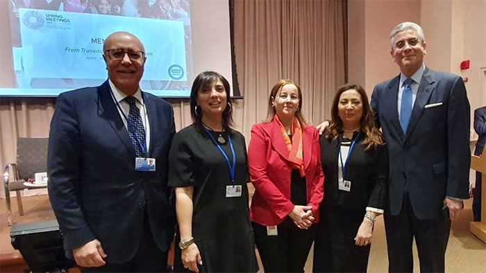 En pleines Réunions du Printemps FMI & Banque mondiale, Mme Bouchamaoui a pris part, mercredi matin au siège de la Banque mondiale à la journée dédiée à la région Afrique du Nord Moyen Orient, aux côtés Férid Belhaj, vice-président de la Banque mondiale pour la région, et des panélistes Marouane El Abassi, gouverneur de la Banque centrale, Olfa Soukri Cherif, députée à l’ARP, ainsi que Sahar Nasr, la ministre égyptienne de l’Investissement et de la Coopération internationale et Motanna Gharabieh, ministre jordanien des Tics.