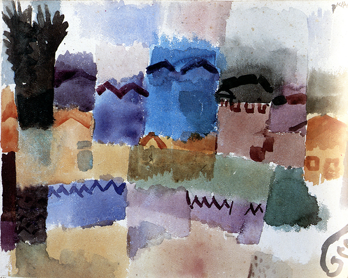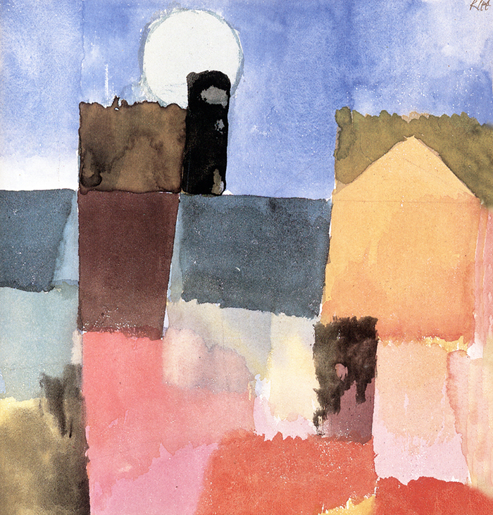 Les maisons ne racontent rien, ne représentent rien : elles se tiennent comme des volumes. Klee y trouve une grammaire de rectangles, de portes, de fenêtres, de lignes. Cela prépare sa future “période architectonique”.