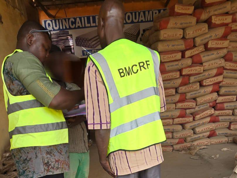 Cette mission poursuit un double objectif : vérifier la disponibilité du ciment et s’assurer que les prix appliqués respectent strictement la réglementation en vigueur. Le coordonnateur général de la BMCRF rappelle que le prix de vente plafond du ciment demeure inchangé, aussi bien pour le sac que pour la tonne : CPJ 35 : 100 000 F CFA la tonne et 5 000 FCFA le sac, CPA 45 : 115 000 F CFA la tonne et 5 750 F CFA le sac.