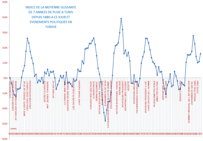 - de la pluviométrie, des intensités de pluie et des débits des oueds importants ; par exemple a TUNIS le pluviomètre de SAIDA MANOUBIA A été installé en 1870