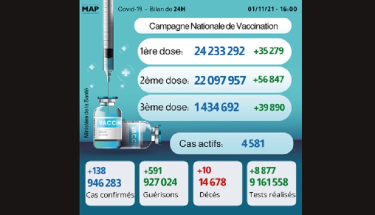 Le nombre de primo-vaccinés a atteint 24.233.292, tandis que celui des personnes ayant reçu la 2ème dose s’élève désormais à 22.097.957, a précisé le ministère dans son bulletin quotidien sur la situation épidémiologique Covid-19.