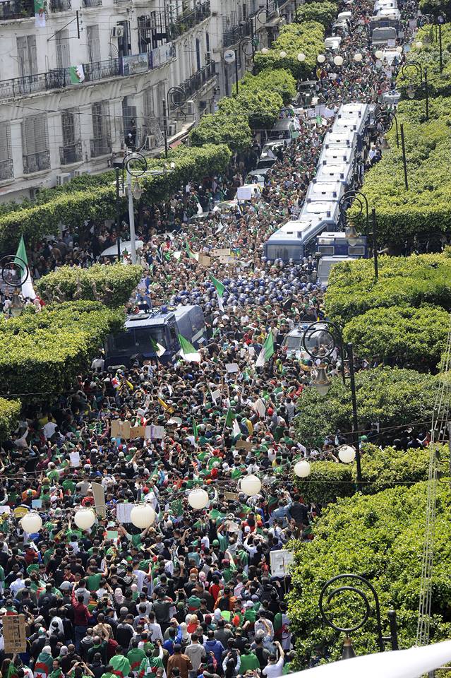 Dès la fin de la prière de vendredi, des processions interminables de manifestants venues de tous les quartiers de la capitale, convergent vers le centre de la ville, armés de drapeaux, de banderoles et de pancartes des plus variées. Ceux venus du côté de Bab El Oued ont été empêchés par la police de prendre la route du front de mer où se trouvent les sièges des deux chambres du Parlement. Ils ont été contraints de passer par Bab Azzoune en scandant « Peuple éduqué et un Etat mal élevé ».