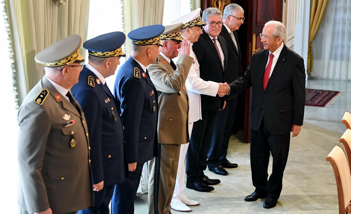 Après avoir rendu hommage au président défunt, Béji Caïd Essebsi, le président Ennaceur a salué les les forces armées tunisiennes, louant leurs efforts exceptionnels et leur dévouement au service de la patrie, de son intégrité territoriale et de sa souveraineté. Il a appelé à redoubler de vigilance et hisser le niveau opérationnel face à tous risques et dangers éventuels intérieurs ou extérieurs.