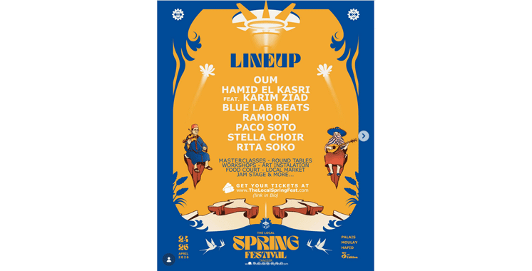 Initiée par The Local Sessions, une association basée à Tanger et dédiée à la promotion de l’art, de la culture et de l’éducation, cette manifestation culturelle proposera une programmation musicale éclectique réunissant artistes confirmés et talents émergents. Ainsi, la soirée d’ouverture du vendredi sera animée par Oum et Ramoon. Le samedi verra la participation du duo britannique Blue Lab Beats, ainsi que de Hamid El Kasri accompagné de Karim Ziad et de Rika Soko. La clôture, prévue le dimanche, sera assurée par Stella Choir et Paco Soto. Au-delà des concerts, le Local Spring Festival met l’accent sur les industries culturelles et créatives à travers une série de tables rondes interactives, de master class animées par des experts et d’ateliers immersifs.