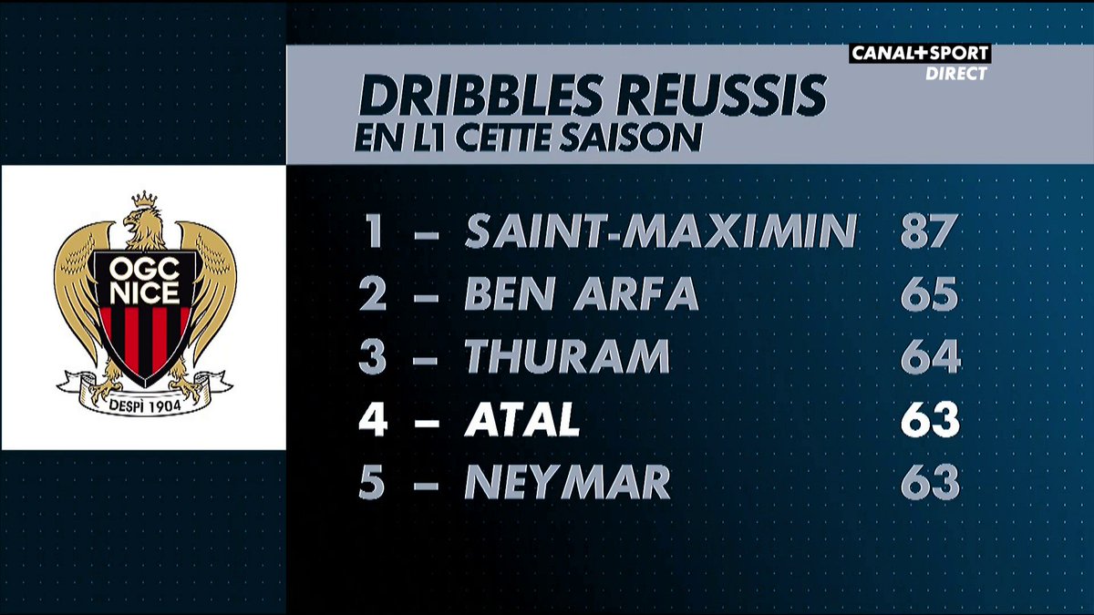 En effet, l’international algérien a réalisé autant de dribbles réussis que la star brésilienne, soit 63. Un chiffre qui lui permet de se classer à la quatrième place de cette statistique dans le championnat de France :