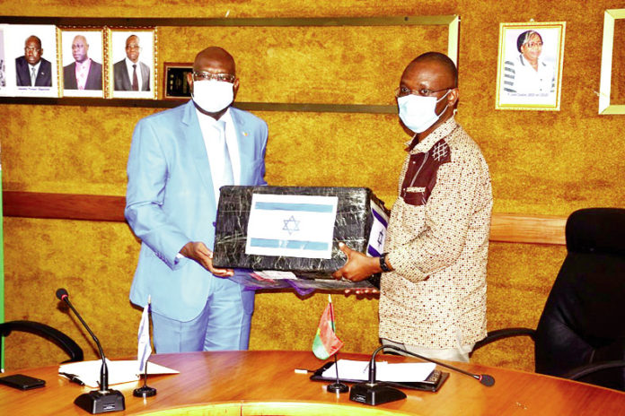 La liste des pays qui ont apporté leur soutien au Burkina Faso pour freiner la propagation de la COVID-19 s’est encore allongée. L’Etat d’Israël en fait désormais partie depuis, le jeudi 18 juin dernier. Il a offert 6 000 masques de protection, 500 combinaisons de protection et 50 thermos flash au ministère de la Santé. Ce don, a été remis audit département ministériel par l’ex-ministre en charge de l’agriculture, Jacob Ouédraogo, qui a représenté le consul honoraire d’Israël au Burkina Faso. Selon lui, le matériel est estimé à 10 millions F CFA. Cette contribution qu’il a qualifiée de modeste est la preuve, de son avis, de l’amitié entre les deux pays. M. Ouédraogo dit espérer que leur geste incitera d’autres partenaires à leur emboîter le pas. Au nom de la présidente du comité sectoriel « santé » de lutte contre la COVID-19, la ministre Claudine Lougué, le secrétaire général du ministère de la Santé, Wilfried Ouédraogo, ont tour à tour remercié, le peuple d’Israël pour cet appui. Cette pandémie mondiale a surpris chaque pays dans son élan de développement, a reconnu le secrétaire général du ministère de la Santé. « Si, un ami pense à vous, c’est un geste de fraternité », s’est-il réjoui. Cette aide, est convaincu M. Ouédraogo, va permettre à l’équipe de riposte contre la maladie à coronavirus de renforcer davantage ses opérations. Pour y parvenir, selon les dires de M. Ouédraogo, l’agent de santé doit avoir l’outil et l’équipement de protection nécessaire. C’est pourquoi, il a rassuré le donateur que le don sera mis à la disposition des acteurs de la lutte contre la maladie.
