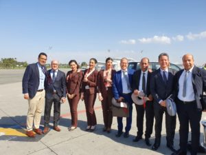 Pour ce vol inaugural de la nouvelle ligne Casablanca-Miami, une importante délégation officielle a fait le déplacement. Elle est composée de Mohammed Sajid, ministre du Tourisme, du Transport aérien, de l’Artisanat et de l’Economie solidaire ; Othman Ferdaous, secrétaire d’Etat auprès du ministre de l’Industrie, de l’Investissement, du Commerce et de l’Economie numérique, chargé de l’Investissement ; Hamid Addou, président directeur général de Royal Air Maroc ; Adel El Fakir, directeur général de l’Office National Marocain du Tourisme (ONMT) ; Zouhair Mohammed El Aoufir, directeur général de l’Office National des aéroports (ONDA) ; Abdellatif Kabbaj, président de la Confédération Nationale du Tourisme (CNT); Hicham Boudraa, directeur général par intérim de l’AMDIE ; Imad Bourakad, directeur général de la Société Marocaine d’ingénierie touristique (SMIT) ; Azzeddine Kettani, président de la Chambre Américaine de Commerce au Maroc, ainsi que des patrons de presse.