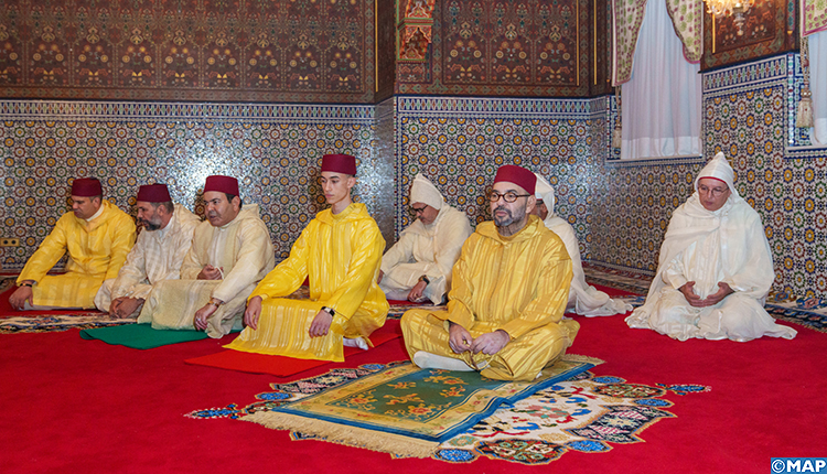 Sa Majesté le Roi Mohammed VI, Amir Al-Mouminine, que Dieu L’assiste, accompagné de SAR le Prince Héritier Moulay El Hassan et de SAR le Prince Moulay Rachid, a commémoré, jeudi 26 Ramadan 1443 de l’Hégire correspondant au 28 avril 2022, Laylat Al-Qadr bénie.