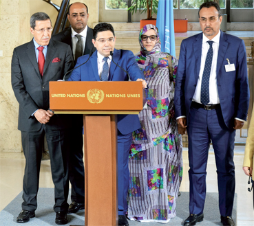 A l’issue de la 2e table ronde sur le dossier du Sahara, tenue jeudi et vendredi derniers à Genève, Nasser Bourita a insisté sur le référentiel déterminant la position marocaine, précisant que «les expressions indépendance ou référendum n’existent pas» (Ph. MAP)
