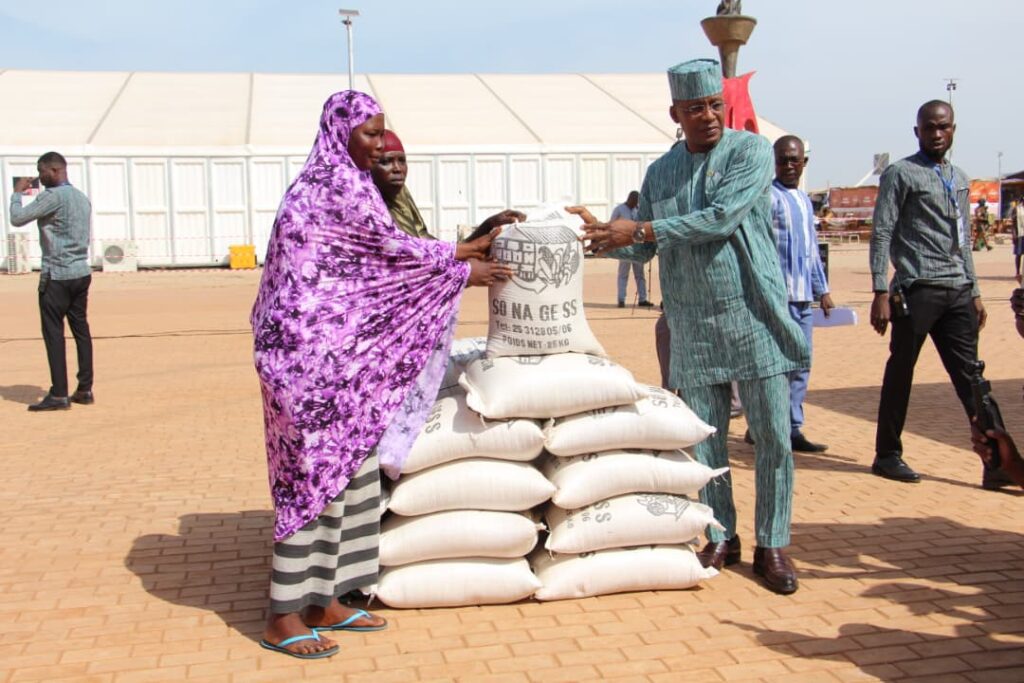 Au cours de la cérémonie d’ouverture du SARA, le ministre Poda a remis au nom du gouvernement 12 tonnes de vivres à 500 personnes vulnérables dont 70 % des personnes déplacées internes et 30 % des populations hôtes