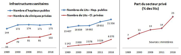 «En intégrant les projets en cours de construction, on estime que le nombre de lits dans le secteur privé va passer à 12 500, alors qu’il n’était que de 5 000 lits en 2014. On assiste depuis 2015 à une course effrénée à la construction de nouvelles cliniques », écrivait en février 2018 le dr Slaheddine Sellami sur le site Leaders.tn [https://www.leaders.com.tn/article/23998-dr-slaheddine-sellami-nouveaux-hopitaux-nouvelles-cliniques-les-fausses-pistes-de-la-politique-de-sante-en-tunisie].