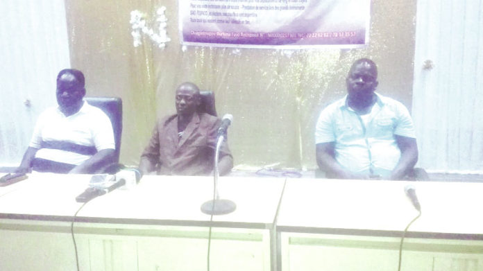 Le président de l’association des jeunes taximen Moumouni Ouédraogo (milieu) invite les taximen à s’unir pour mieux défendre leur métier.L’Association des jeunes conducteurs de taxi a organisé une conférence de presse, le samedi, 3 octobre 2020 à Ouagadougou, pour exposer leurs difficultés et demander de meilleures conditions de travail.