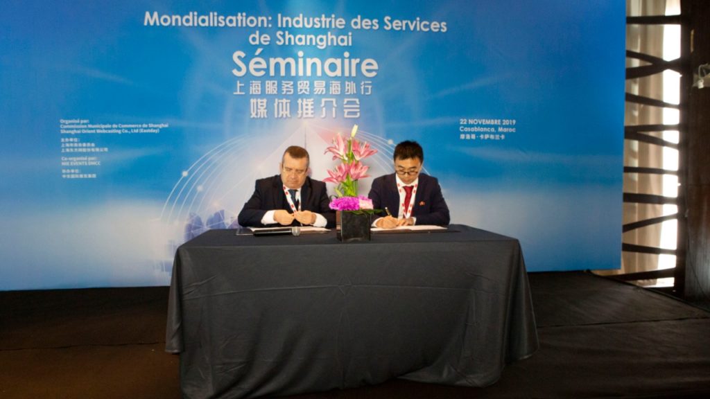Pour renforcer la coopération entre Shanghai et le Maroc et promouvoir l’évolution du commerce en Chine, un partenariat a été signé entre l’AMDIE et la Chambre de Commerce et d’Industrie de Shanghai, soutenu également par des entités marocaines telles que l’AMLOG, le club des CEO et BMCE Bank of Africa.