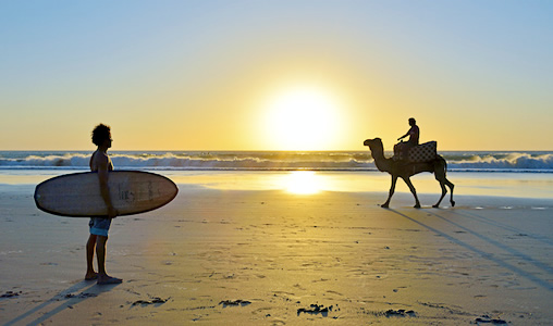 Ce village du la côté atlantique est une destination très appréciée par les amateurs de sport comme le surf en raison de la qualité de ses spots. Taghazout est considéré comme la capitale marocaine du surf. Il est également visité pour ses dunes, ses rampes et son souk traditionnel.