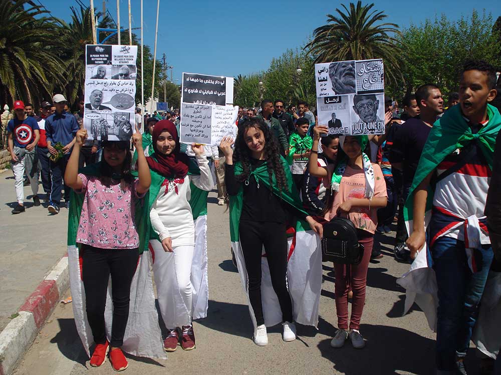 « One, two, three, viva l’Algérie », « klitou lebled ya essarakines », et tant de slogans répétés par la foule. « Nous voulons un avenir meilleur, nous déclare l’une des collégiennes, nous travaillons bien en classe et nous souhaitons vivre dans un pays plein de bonnes choses » ajoute notre interlocutrice.