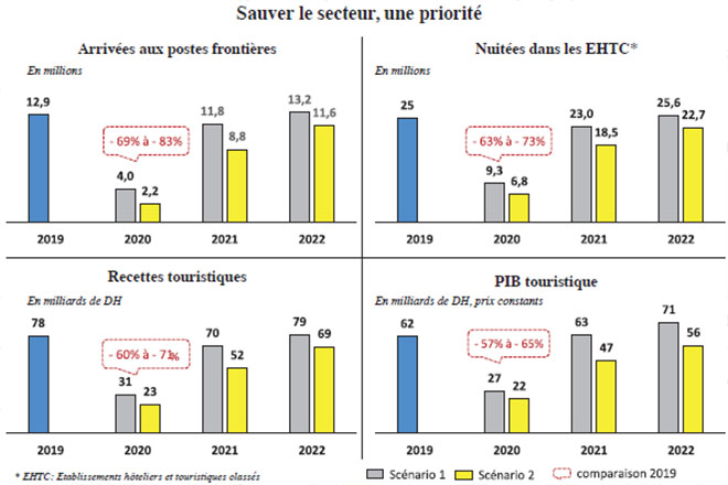 C’est la première année depuis plus d’une décennie que Marrakech est vide en août. Le cafouillage et la décision du 26 juillet ont contraint les touristes nationaux à quitter les établissements en un temps record, réclamant le remboursement du séjour (voir notre édition n°5813 du 28 juillet 2020). Ce cafouillage a surtout laissé sur le tapis plusieurs unités, qui malgré cette morosité ont investi plus de 300.000 DH/par établissement pour le protocole sanitaire et un autre budget pour rafraîchir les chambres… Les employés des hôtels, grandes victimes de cette crise, ne savent plus à qui s’adresser: à l’employeur ou au gouvernement, puisque le contrat-programme pour le maintien des salariés n’est pas encore signé. «Le pire est à craindre dans les semaines prochaines!» souligne un opérateur de la place. A Agadir où un grand nombre d’hôtels sont restés fermés, le scénario est aussi catastrophique qu’à Marrakech avec un léger mieux en termes d’occupation. Les hôtels gadiris qui ont rouvert leurs portes tournent avec un turnover oscillant entre 5 et 35% pour les plus performants. Seule la station Taghazout s’en sort plutôt bien en cette période de crise. Au nord et plus exactement à Tamouda Bay en revanche, les hôtels ont réussi à récupérer leurs clients après le cafouillage du 26 juillet. Munis d’une réservation, les touristes rbatis, fassis et casablancais ont pu revenir à la station au grand soulagement des hôteliers.