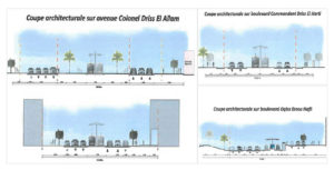 Sur certains boulevards (Bd Driss Al Harti et Bd Oqba Ibnou Nafii) les différences de niveau de voirie impliquent la réalisation de murs de soutènement.