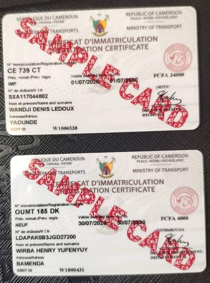 Spécimen de la nouvelle carte griseLe ministre des Transports (Mintrans) Jean Ernest Massena Ngalle Bibehe a signé le 19 août un communiqué dans lequel il informe l’opinion publique qu’un nouveau support des certificats d’immatriculation (Carte grise) a été mis en circulation pour compter de la date du 17 août 2020 sur l’ensemble du territoire national. La nouvelle carte grise a été mise en place dans le cadre des reformes entreprises dans le cadre du processus de sécurisation et de modernisation des titres de transports. Cette dernière se présente alors sous la forme « d’une carte de crédit modèle PVC constitué de protocole de sécurité visibles et invisibles de dernière génération permettant une authentification mobile en temps réel. Au-delà des aspects techniques, la nouvelle carte grise offre une meilleure flexibilité de transport et de conservation, ainsi qu’une meilleure tolérance aux intempéries », peut-on lire sur le communiqué.