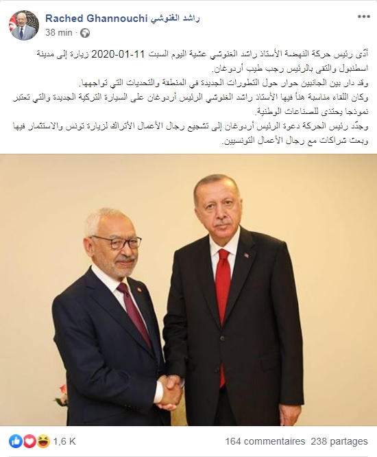 Il faut croire que Ghannouchi vit très mal sa défaite d’hier, et l’assaut qui en a résulté, contre lui, de la part des membres de son parti, pour qu’il soit « perturbé » au point, d’être à court d’idées pour donner une explication plausible à sa visite éclair à Istanbul, le lendemain, même d’un marathon au parlement, qui s’est conclu par une défaite cuisante de son parti, mais aussi, et surtout, par l’émergence, pour la première fois, d’un front politique, capable de détrôner son parti et de l’écarter du pouvoir.