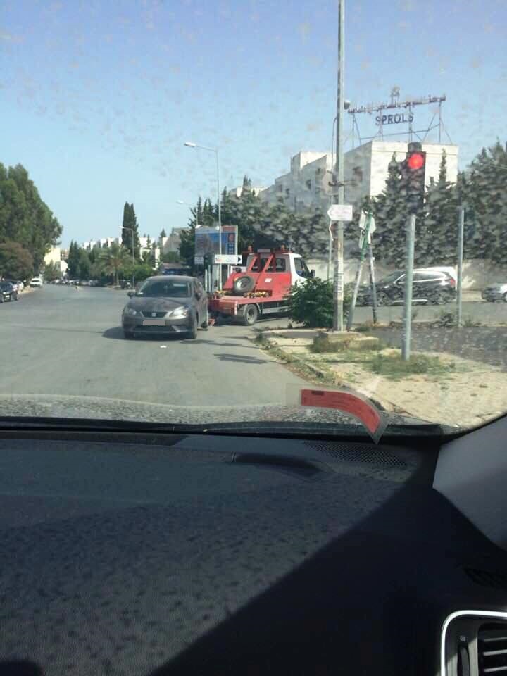 Vu ce dimanche du côté d’El Manar, la remorqueuse de la fourrière d’El Manar qui se hâtait d’emmener sa « proie » dans son antre. Le conducteur de la remorqueuse, comme souvent, non accompagné par un agent de police, s’est donné un malin plaisir à griller tous les feux rouges qu’il avait sur sa route, indifférent aux autres usagers de la route, à leurs coups de klaxon et encore plus, à leurs coups de freins pour éviter de se faire emboutir.