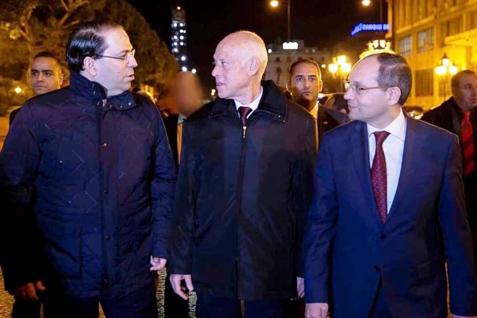 Le président de la République, Kaïs Saïed, accompagné du chef du gouvernement sortant, Youssef Chahed, s’est rendu ce soir à la salle d’opération centrale du ministère de l’intérieur, pour superviser le travail des unités sécuritaires et leur déploiement sur tout le territoire tunisien.