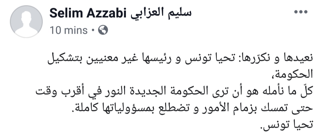 Le Secrétaire général du parti Tahya Tounes a mis fin aux rumeurs qui courent, quant à une probable participation du parti ou de son président, Youssef Chahed au prochain gouvernement, en publiant un post sur sa page Facebook, où il assure que ni le parti ni Youssef Chahed ne sont nullement concernés par la formation du prochain gouvernement.