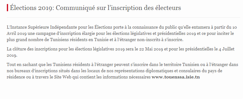 Selon le communiqué, la clôture des inscriptions pour les élections législatives 2019 aura lieu le 22 Mai 2019 et pour les présidentielles le 4 juillet 2019. En attendant espérant que le site se débloque!