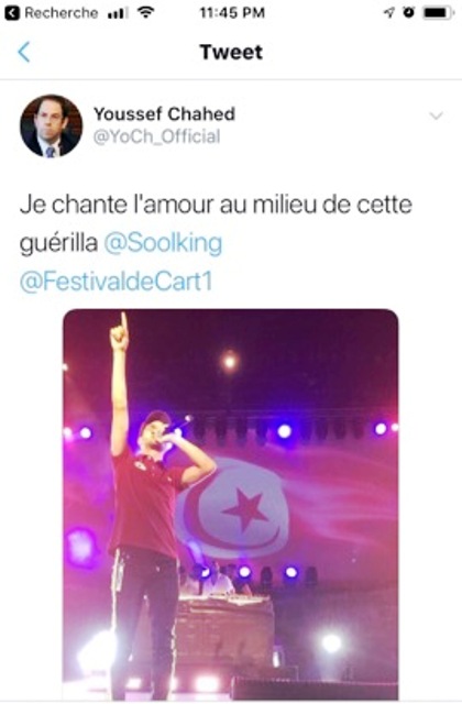 Chahed a apprécié le spectacle et l’a fait savoir, à travers un tweet sur son compte, où il disait « Je chante l’amour au milieu de cette guérilla ».