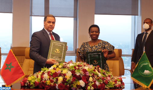 L’accord du pays hôte relatif à l’organisation de cette Retraite a été signé, mardi, au siège de l’Union africaine par la Vice-Présidente de la Commission de l’UA, Mme Monique Nsanzabaganwa, et l’Ambassadeur Représentant Permanent du Royaume auprès de l’UA et de la CEA-ONU, Mohamed Arrouchi.