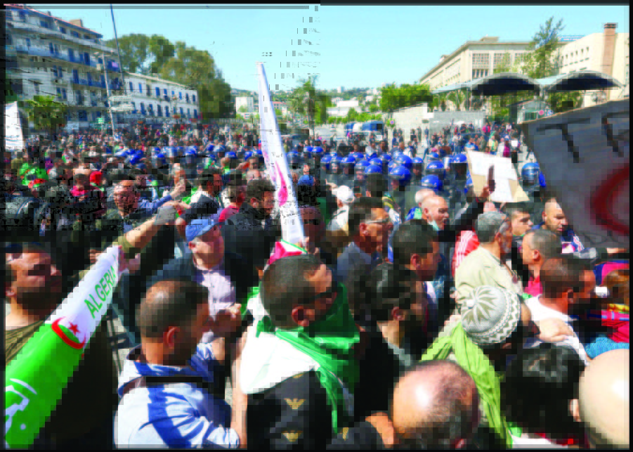 Sur le parvis de la Grande-Poste, la foule scandait : «Echaâb yourid yetnahaw gaâ» (Le peuple veut qu’ils partent tous), «Had echaâb la yourid Gaïd Salah we Saïd» (Ce peuple ne veut pas Gaïd Salah et Saïd), «Klitou lebled ya esseraquine» (Vous avez pillé le pays, bande de voleurs), «Ya lil âr ! Ya lil âr ! Naqaba bila qarar !» (Quelle honte ! Syndicat sans décision)…