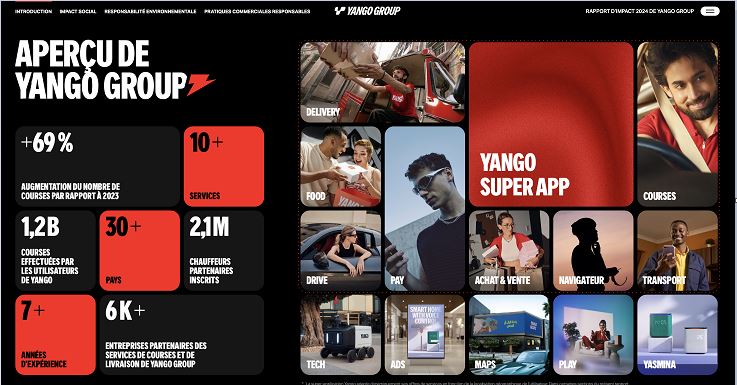 Selon le rapport, les chauffeurs et coursiers partenaires utilisant les services de Yango ont généré plus de 4 milliards de dollars US en 2024. Le réseau de partenaires de Yango compte aujourdʼhui 6 000 entreprises, 2,1 millions de chauffeurs partenaires enregistrés et 600 000 coursiers partenaires.