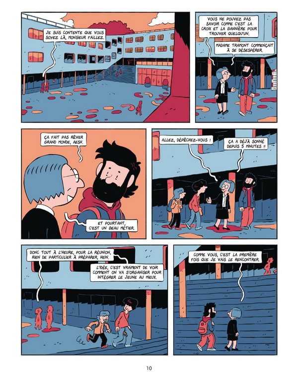 الصعوبات التي يواجهها إيفان في بيئة العمل الجديدة هذه بصفته AESH، تسمح للمؤلف بالتركيز على التحديات التي يواجهها الطلاب في حياتهم اليومية. في الواقع، في اليوم التالي، أجرى إيفان مناقشة جادة مع مدام ترامونت التي اقترحت عليه اتخاذ قرار إذا كان يرغب في الاستمرار في تلبية احتياجات الأطفال.[3] :